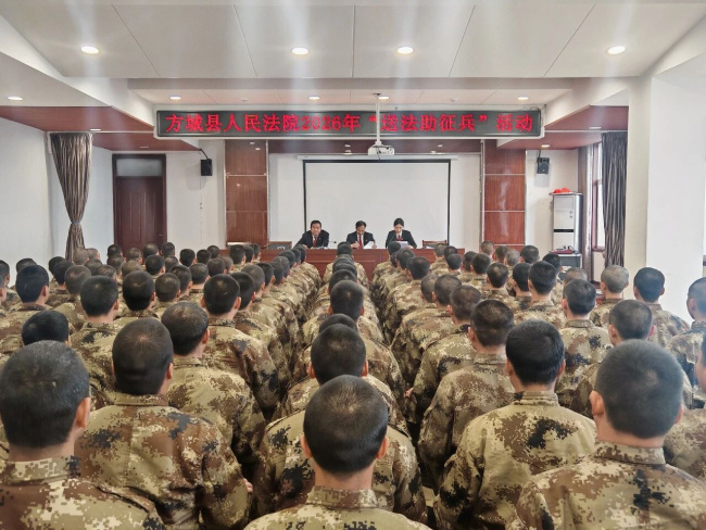 为进一步筑牢预定新兵的法纪思想根基,全面提升其法治素养,3月13日,方城县人民法院审委会专职委员曹天祥、民事审判一庭庭长张红卫等一行到方城县民兵训练基地开展“送法助征兵”活动,为预定新兵送上一堂干货满满的役前“法治第一课”,切实维护军人军属合法权益,为青年筑梦军旅保驾护航。
